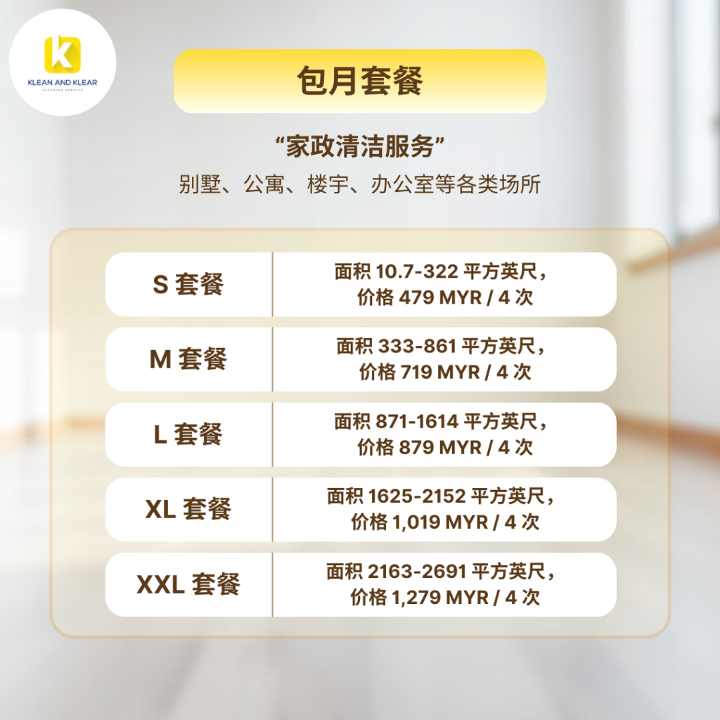 我们提供多种套餐,以适应不同模式的客户群体,确保每位客户都能以最超值的价格,选择到最适合自己的清洁服务。